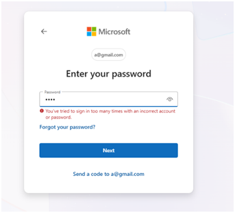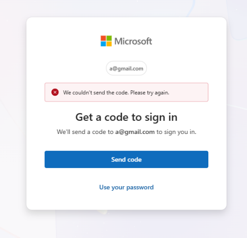 The website presented a Microsoft‑branded login page, prompting users to enter their email address. The authentication flow behaved inconsistently attempting to send a verification code, redirecting users to password input, and ultimately leading to a non‑functional login screen. This behavior strongly indicates a credential‑harvesting phishing attempt rather than a legitimate authentication process.