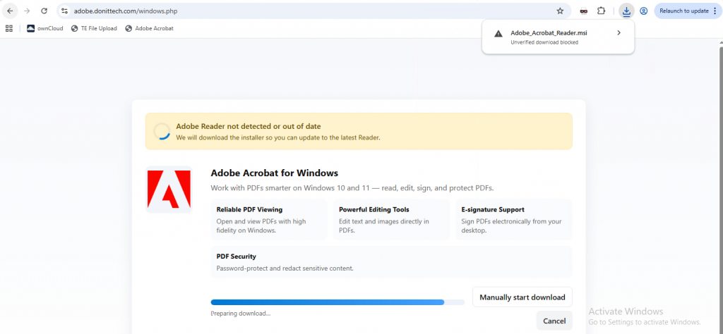 Another campaign observed in Q1 2026 involved a malicious website masquerading as Adobe Acrobat, hosted at:adobe[.]donittech[.]com/windows[.]php